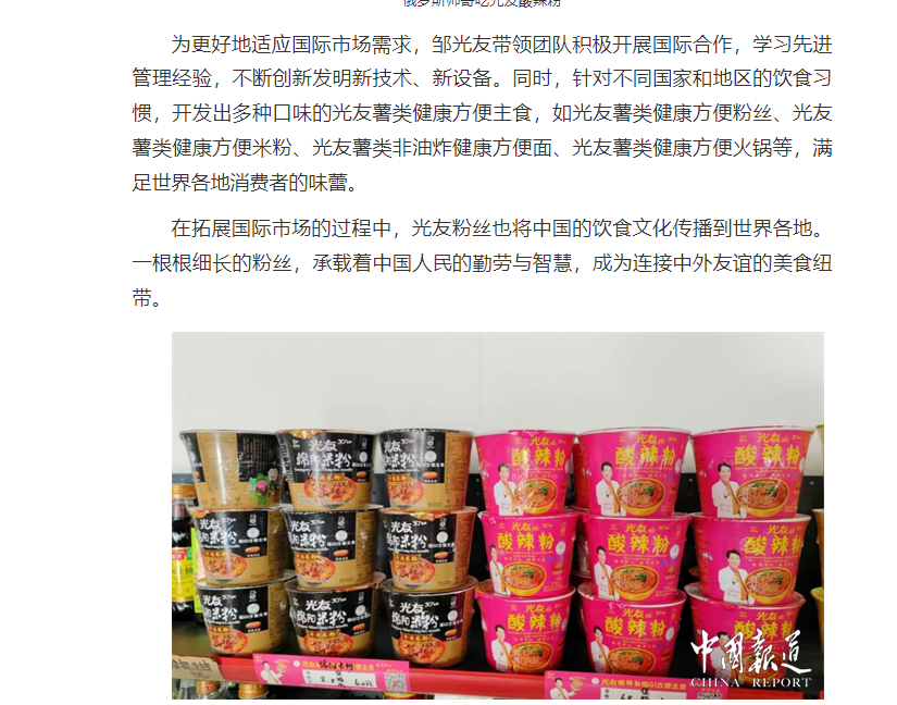 轉(zhuǎn)載中國報(bào)道網(wǎng)——鄒光友33年專注一根紅薯粉絲 暢銷全世界