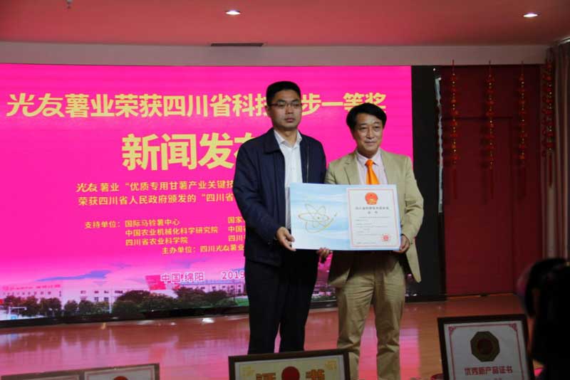 四川光友薯業(yè)有限公司(簡稱:光友薯業(yè))成立于1992年10月18日,是一家以薯類深加工為主的健康產(chǎn)業(yè)型、高新技術(shù)型民營企業(yè)。光友薯業(yè)自1992年來,不忘初心,專做薯業(yè),辛勤耕耘,在中國乃至世界把紅薯、馬鈴薯做成一大健康主食產(chǎn)業(yè),先后帶動薯區(qū)60萬薯農(nóng)脫貧致富,發(fā)展成為全球行業(yè)知名企業(yè)。連續(xù)九屆被國家八部委評定為“農(nóng)業(yè)產(chǎn)業(yè)化國家重點龍頭企業(yè)”,同時獲得“國家高新技術(shù)企業(yè)”、“全國主食加工業(yè)示范企業(yè)”、“全國馬鈴薯主食化產(chǎn)業(yè)十大領(lǐng)軍企業(yè)”、“全國守合同重信用企業(yè)” 、“推進甘薯產(chǎn)業(yè)發(fā)展突出貢獻獎”、“四川省科學技術(shù)進步獎一等獎”等殊榮。光友薯業(yè)獲中國專利70余項,光友方便粉絲獲得美國FDA認證,成為出口美國、日本免檢薯類健康主食。