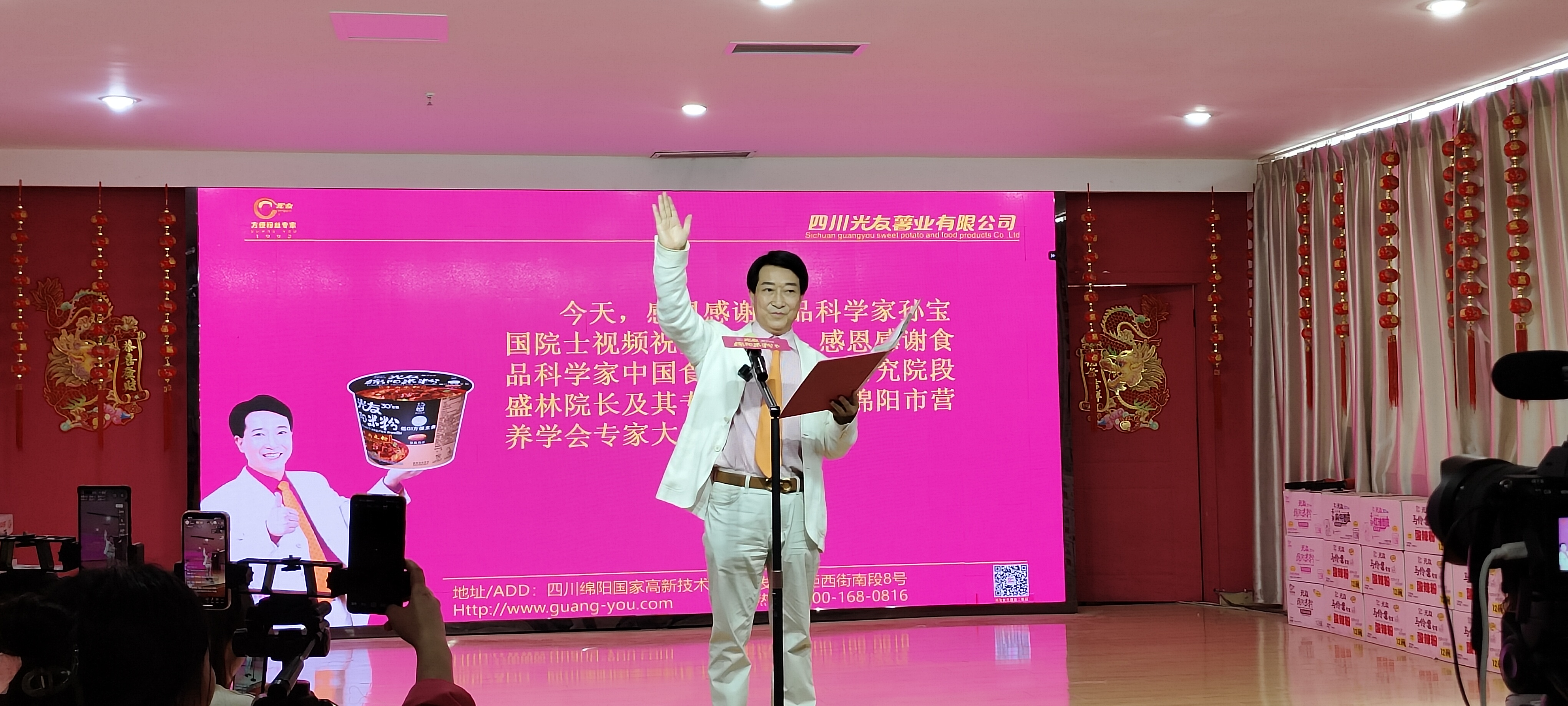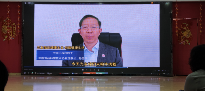 中國工程院院士、中國食品科學(xué)技術(shù)協(xié)會(huì)理事長(zhǎng)孫寶國發(fā)來視頻祝賀《光友低GI健康主食 創(chuàng)造健康生活》:“2023年6月我和其他食品科學(xué)家一起應(yīng)邀到光友薯業(yè)參觀考察及成果評(píng)價(jià),看見光友薯業(yè)32年專注薯類健康方便主食產(chǎn)業(yè),我們都很感動(dòng)。光友薯類方便米粉是由鄒光友為課題負(fù)責(zé)人,研發(fā)完成國家十三五薯類方便主食中的一項(xiàng)重大成果,我多次組織技術(shù)成果評(píng)價(jià),均評(píng)價(jià)為國際領(lǐng)先水平。今天,光友綿陽米粉牛肉米粉獲得低GI健康食品認(rèn)證,并召開新聞發(fā)布會(huì)向全球推廣,這是食品行業(yè)的一大喜訊,向光友薯業(yè)表示祝賀!”。
