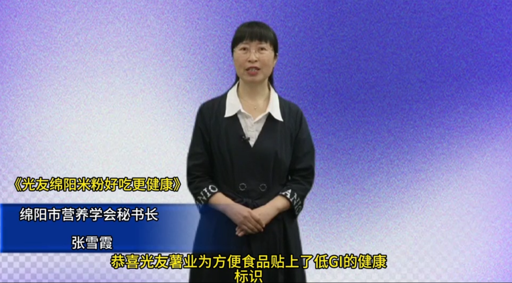 綿陽市營(yíng)養(yǎng)學(xué)會(huì)秘書長(zhǎng)張雪霞在發(fā)布會(huì)視頻分享《光友綿陽米粉好吃更健康》:“光友綿陽米粉,經(jīng)過技術(shù)創(chuàng)新、科學(xué)檢測(cè)及臨床實(shí)驗(yàn),光友綿陽米粉牛肉米粉GI值51,達(dá)到了低GI標(biāo)準(zhǔn),并且人體實(shí)驗(yàn)結(jié)果顯示,光友綿陽米粉的餐后兩小時(shí)血糖曲線呈現(xiàn)緩升緩降的狀態(tài),有助于維持餐后血糖的穩(wěn)定狀態(tài),從而可以避免因血糖的劇烈波動(dòng)引起的一系列不良的代謝反應(yīng)。這對(duì)于方便食品來說,能夠做到低GI是很不容易的!恭喜光友薯業(yè)為方便食品貼上低GI健康標(biāo)識(shí)!也給想要追求健康的朋友們外出時(shí),有了方便健康的選擇!祝愿光友薯業(yè)未來研發(fā)更多健康美味的方便食品!給大眾更多健康的選擇!”