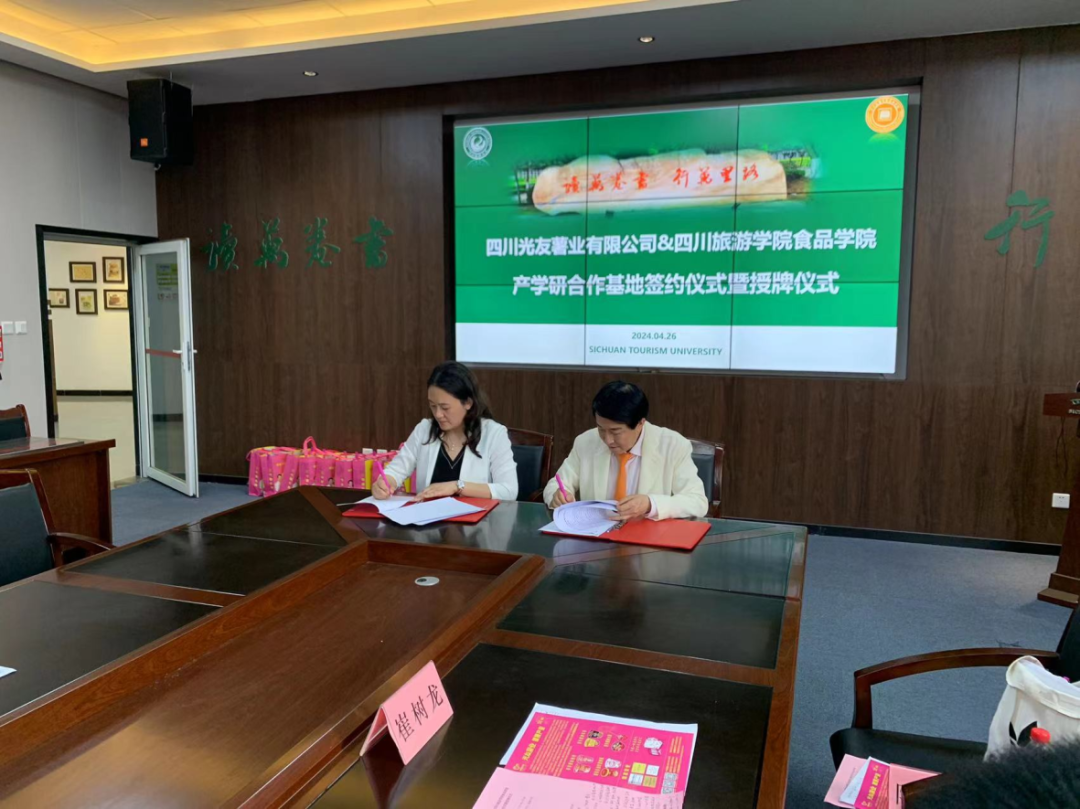 演講完成后,四川光友薯業(yè)與四川旅游學(xué)院食品學(xué)院產(chǎn)學(xué)研合作基地簽約儀式暨授牌儀式正式啟動。