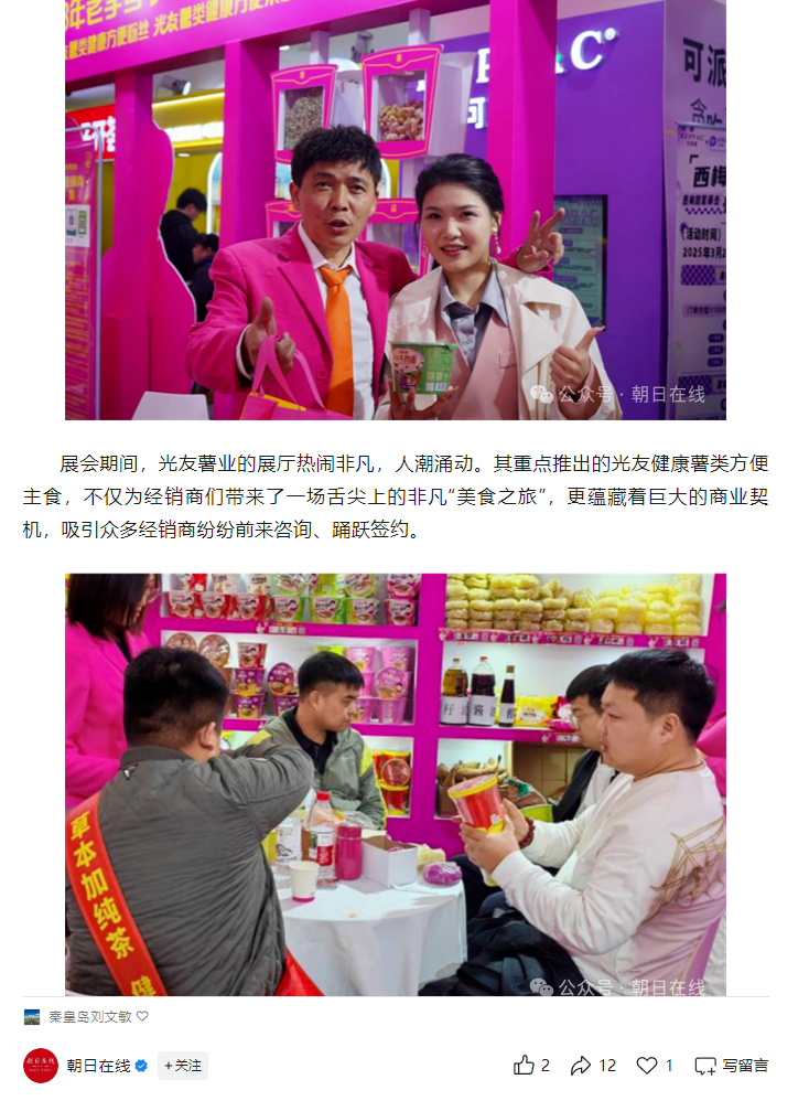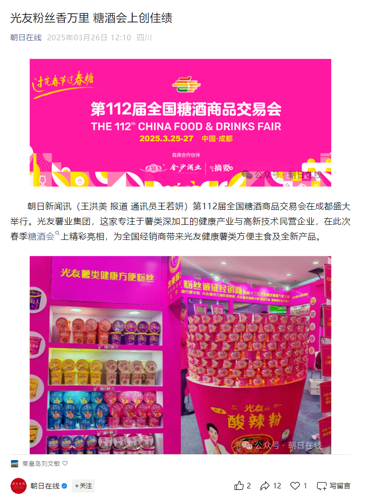 轉(zhuǎn)載朝日在線——光友粉絲香萬(wàn)里 糖酒會(huì)上創(chuàng)佳績(jī)