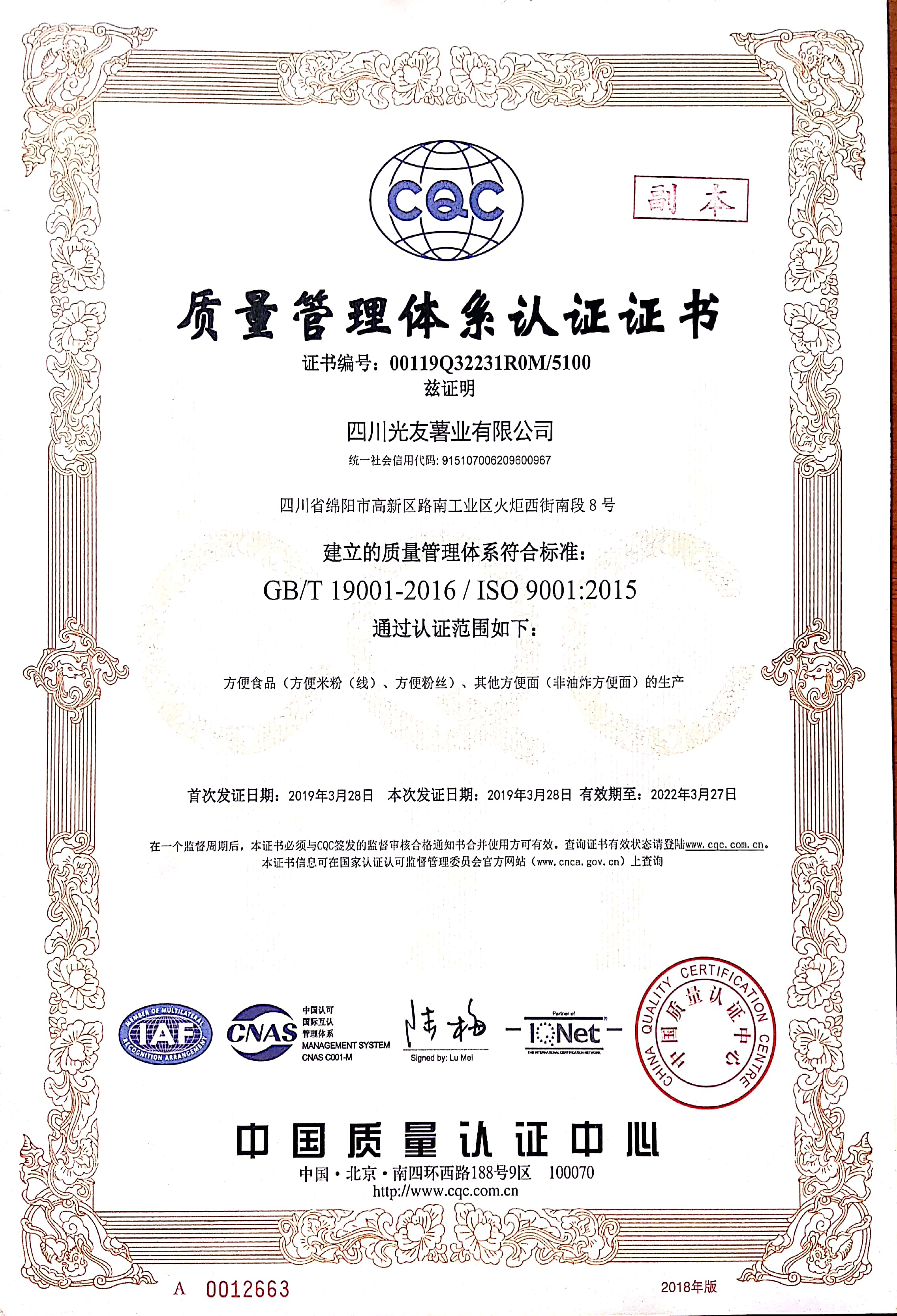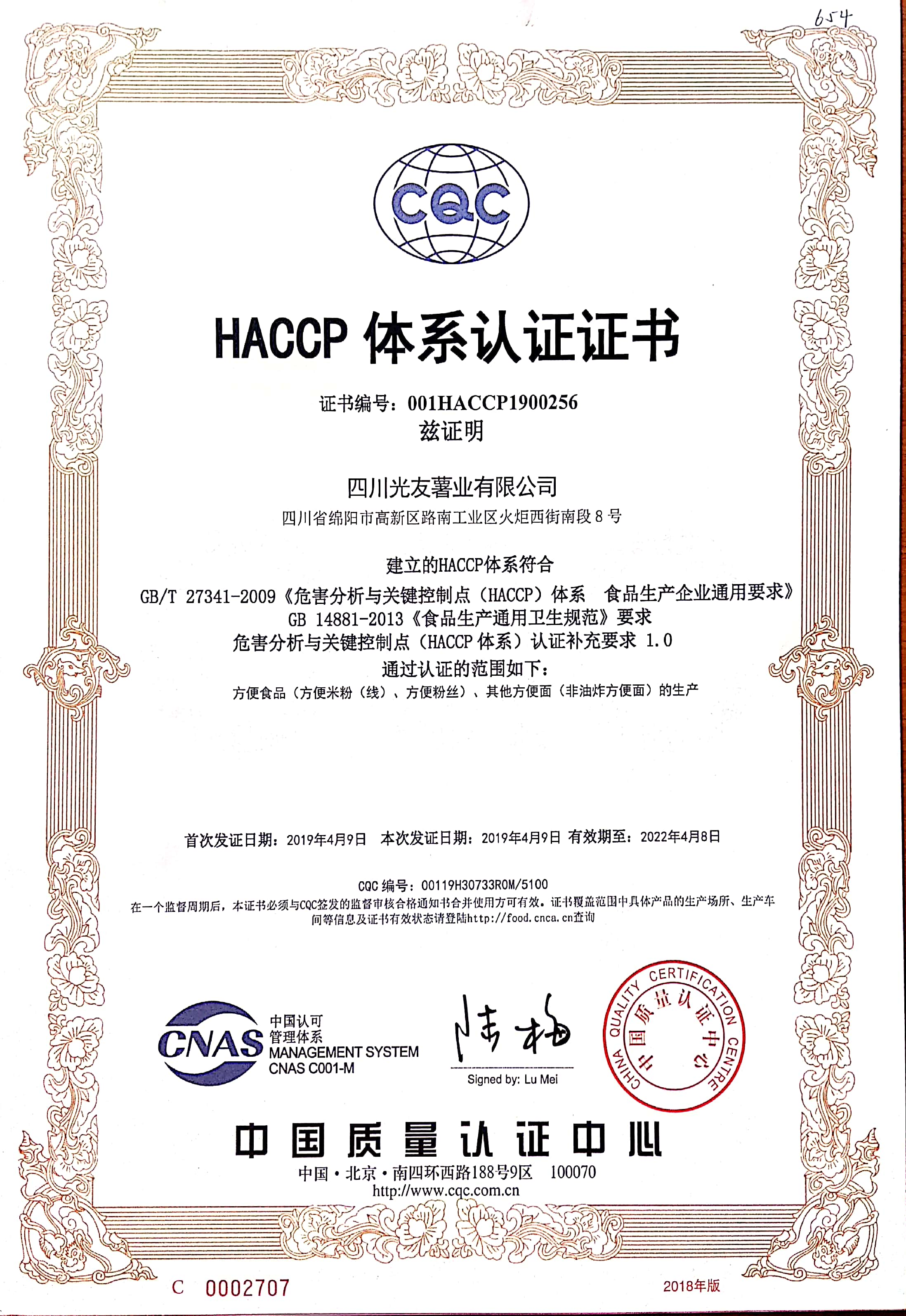 7.1998年,聘請法國管理專家皮埃爾?伯內(nèi)克斯先生為光友名譽總經(jīng)理,引入國際管理標準。1998年至2022年,在國內(nèi)外粉絲行業(yè)率先連續(xù)通過“ISO9001國際質(zhì)量體系認證”及“HACCP國際質(zhì)量體系認證