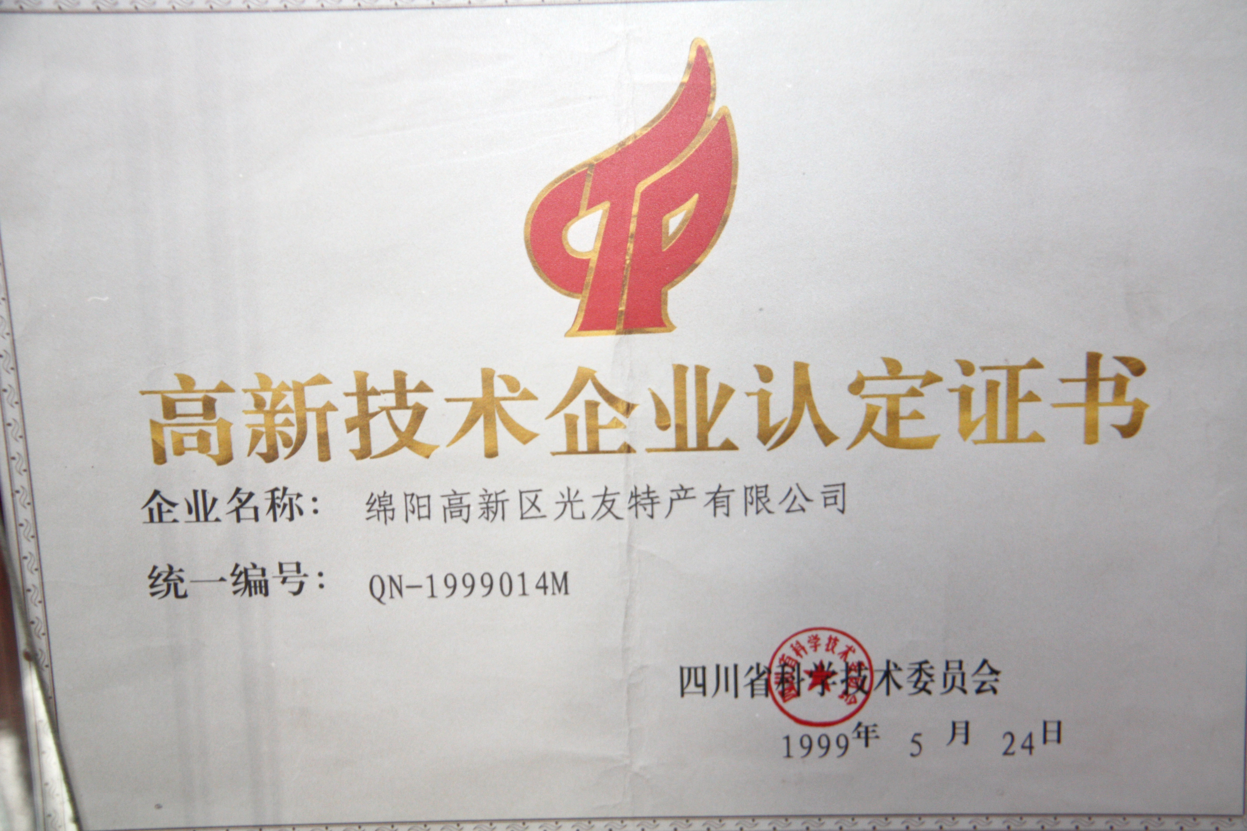 9.1999年,榮獲國家“高新技術(shù)企業(yè)”、“科技產(chǎn)業(yè)型企業(yè)”認證;四川省旅游局授予“四川省旅游商品定點生產(chǎn)單位”認證。