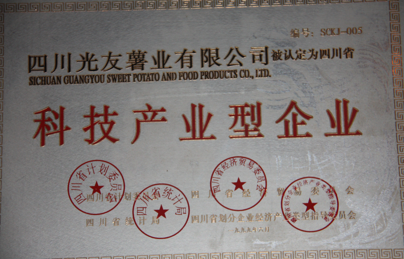 5.1996年,光友薯業(yè)正式搬遷至光友培訓大樓,榮獲“四川食品質(zhì)量定點跟蹤特別介紹單位”稱號。