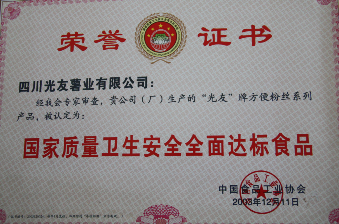 14.2003年,中國食品工業(yè)協(xié)會授予“國家質(zhì)量衛(wèi)生安全全面達標食品”殊榮。