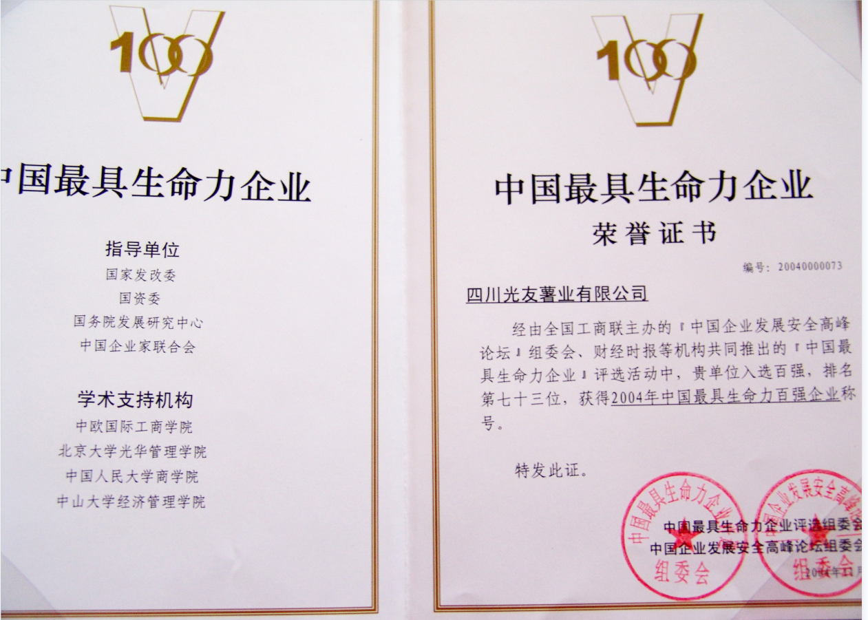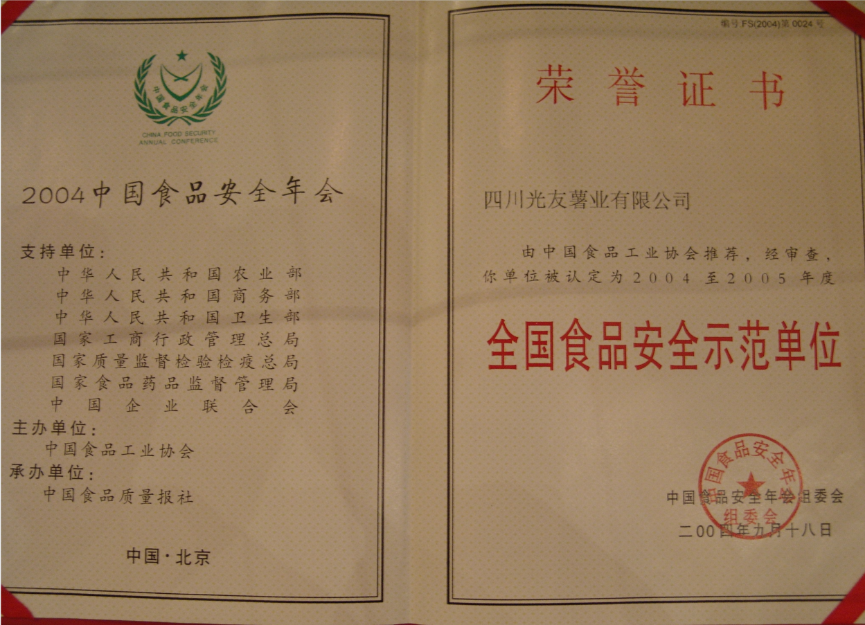 15.2004年,榮獲“中國最具生命力企業(yè)”、“全國食品安全示范單位”稱號。