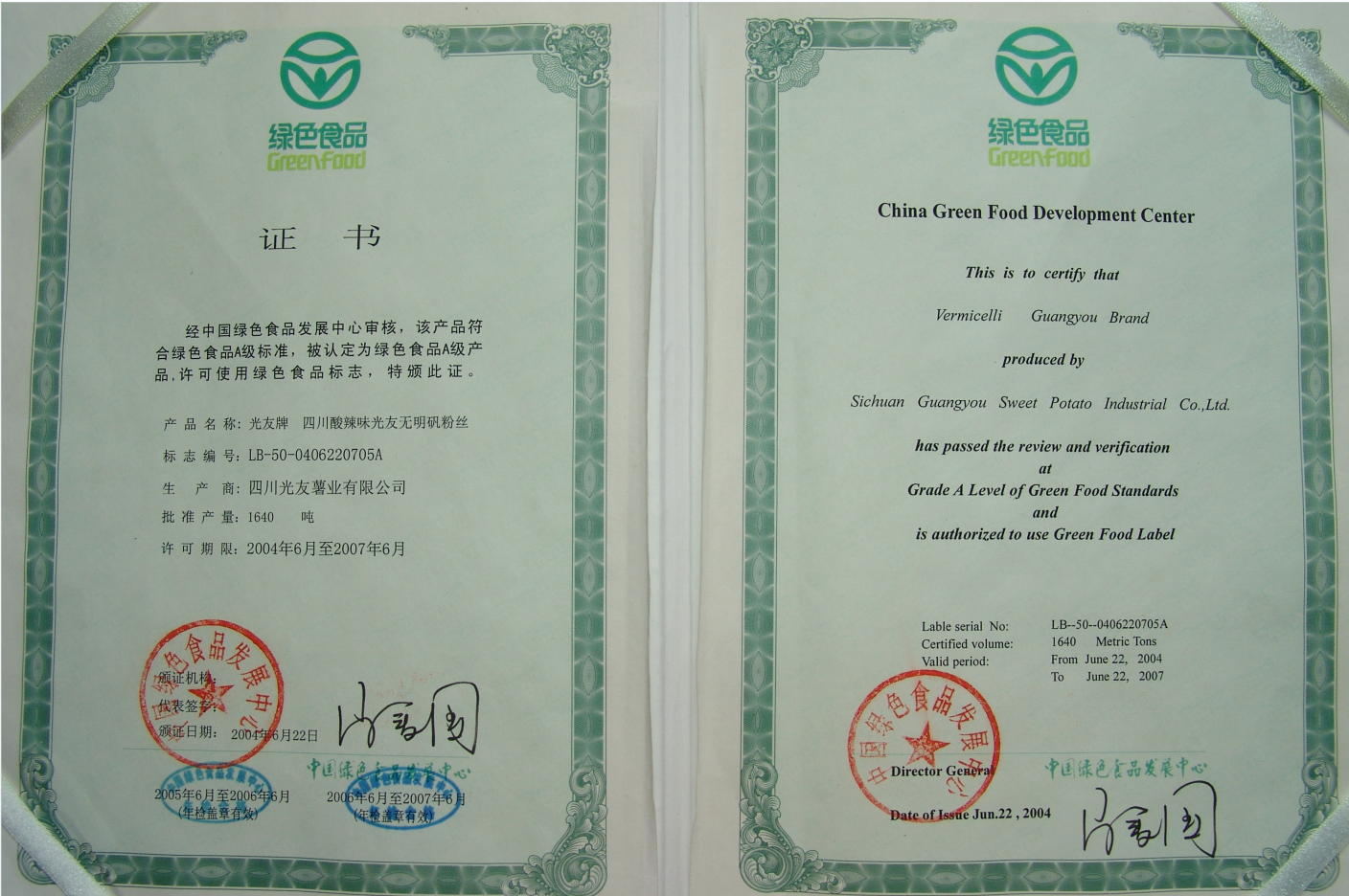 16.2004年,國家農(nóng)業(yè)部頒發(fā)“支持三農(nóng)貢獻獎”、光友粉絲獲“中國綠色食品”認證。